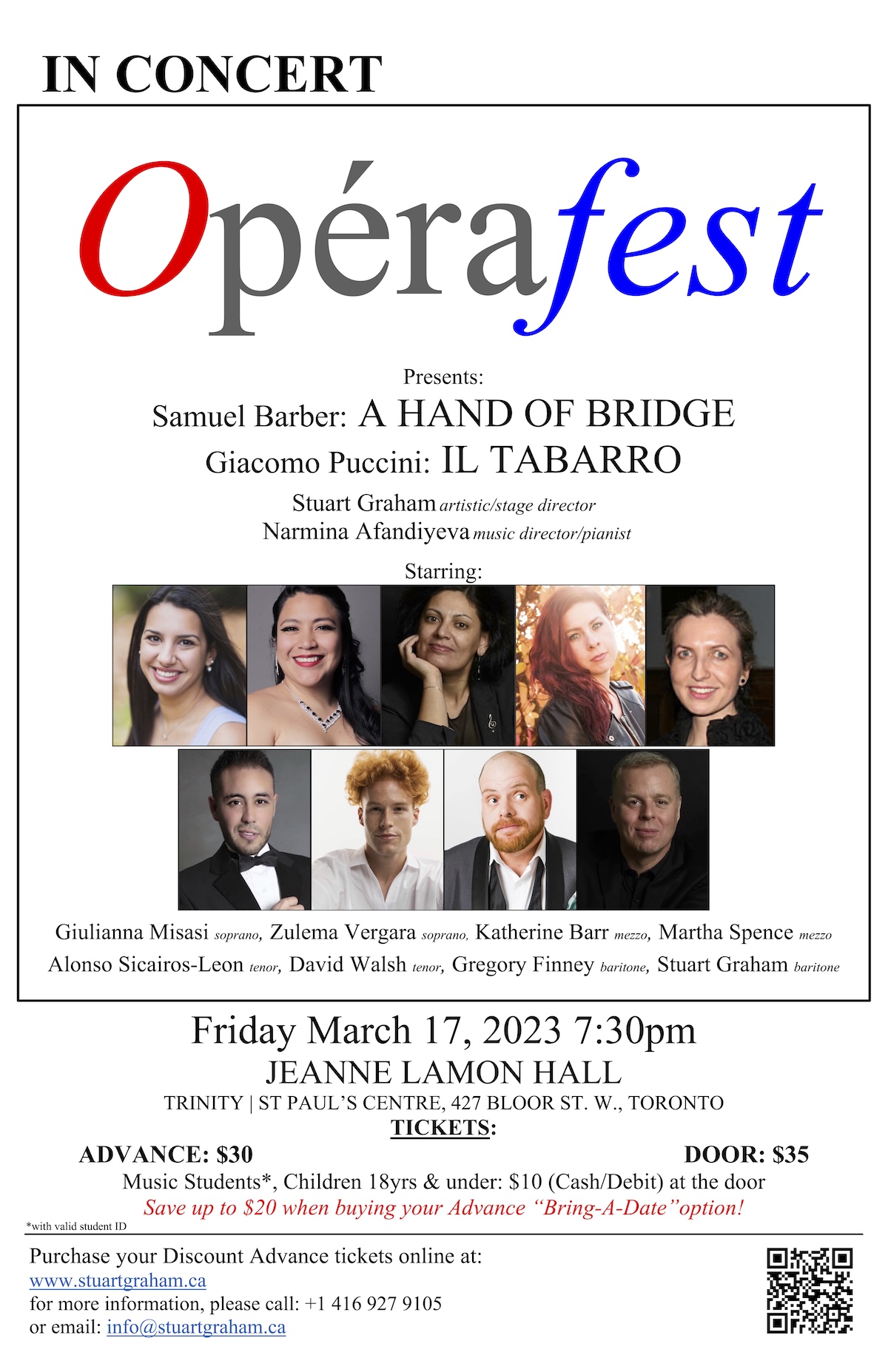 In the beginning, our showcase programming had been a concert of assorted arias and ensemble excerpts of the operatic repertoire. We upped our game for the 2023 edition and presented 2 complete one-act operas (A Hand of Bridge & Il Tabarro) in addition to a selection of arias and ensembles to complete the evening celebrating the talented cast and the lyric arts. For our 2024 edition, OpéraFest focused on the Italian Bel Canto style and celebrated the repertoire featuring excerpts from Bellini’s NORMA & I CAPULETTI E I MONTECCHI, Donizetti’s DON PASQUALE, Rossini’s LA CENERENTOLA and Verdi’s UN BALLO IN MASCHERA, underlining the contrast of compositional styles, the composer’s distinct “signatures”, demonstrating the technical and aesthetic distinctions of each composer within the scope of Bel Canto and the theatrical conventions from Commedia dell’Arte into the more romantic realism. The 2025 edition celebrated l’Opéra Française presenting major scenes and acts from Bizet’s CARMEN, Massenet’s WERTHER and Offenbach’s Les Contes d’Hoffmann.